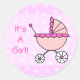 Pegatina Redonda It's a Girl! Carrito para bebés rosa
