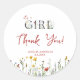 Pegatina Redonda It's a Girl with Spring Flowers Baby Shower