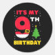 Pegatina Redonda It's My 9th Birthday Christmas 9 Years Old Santa B