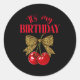 Pegatina Redonda It's My Birthday Cute Cherry Leopard Coquette Bow