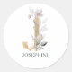 Letra J monograma floral. Letra J en textura marrón dorada acentuada con hojas de compuestos de acuarela verde, flores y polvo de oro. Personalizado con el nombre en el tipo de letra coincidente.