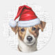 Perfecto para la envoltura de regalos, el envío de tarjetas y alrededor de pegatinas festivos para el amante de los perros de Jack Russell Terrier, este perro Navidad gracioso usa un lindo sombrero de Santa.