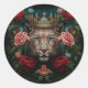 Pegatina Redonda Jaguar with Crown in Flowers Painting
