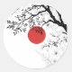 Pegatina Redonda Japanese Red Sun & Brush Tree Art