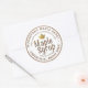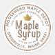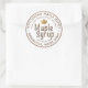 Pegatina Redonda Jarabe de arce en fuente ámbar vertida con hoja de