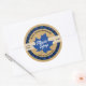 Pegatina Redonda Jarabe De Arce Hoja Azul Búfalo Cuadros Kraft