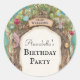 Pegatina Redonda Jardín de hadas forestales encantado en Purpurina