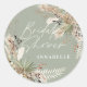 Pegatina Redonda Jardín de hierba de pampas moderna verde elegante