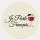 Pegatina Redonda Je Parle Francais Hablo Beret de vidrio francés
