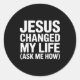Pegatina Redonda Jesus Changed My Life Ask Me How Christian