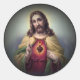 Jesús mostró las heridas en sus manos y en su corazón con cruz resplandeciente. El arte culto vintage.