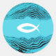 Símbolo cristiano de Jesús en aguas onduladas azul abstracto.