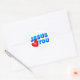 Mensaje cristiano azul y rojo brillante del amor de Jesús en los pegatinas que pueden ser puestos apenas alrededor dondequiera. Recordatorio alegre a los amigos y amados del amor de dios. Las buenas noticias podemos todo el uso.