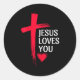 Pegatina Redonda Jesus Loves You Christian Love Cross Heart Design