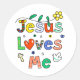 Mensaje de texto alegre y decorativo que dice las palabras JESÚS ME QUIERE. El área de fondo es totalmente transparente, por lo que es fácil personalizar y elegir cualquier color que desee. Imagen disponible en varios regalos y productos.
