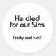 Pegatina Redonda Jesús murió por nuestros pecados cristianos