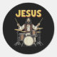 Pegatina Redonda Jesús Rockea Música Funny Diseño de Drummer Cristi