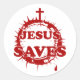 Este artículo tiene un mensaje simple: "Jesús Salva" frente a una corona de espinas; coronado con una cruz, y goteando una gota de la Preciosa Sangre de Cristo. Texto de estilo vintage y corona de espinas con un aspecto ligeramente "angustiado". Hace un gran regalo para la familia y amigos cristianos.