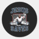 Pegatina Redonda Jesus Saves Hockey Player Team God Hockey Lovers H