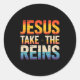 Pegatina Redonda Jesus Take The Reins - Insrational Christian Surre