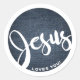 Este diseño edificante muestra el mensaje "¡Jesús te ama!" dentro de un círculo de denim.