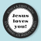 Pegatina Redonda ¡Jesús te ama! | Dirección de devolución en negro
