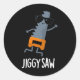 Pegatina Redonda Jiggy Saw Funny Dancing Tool Pun Dark BG