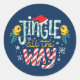 Jingle todo el camino Pegatina redondo clásico. Para un aspecto completamente diferente, cambie el color de fondo. Este producto es totalmente personalizable y el diseño puede transferirse a cualquier otro producto.