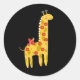 Pegatina Redonda Jirafa y flores de pájaro lindos Amarillo Rojo sob