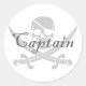 Calavera gris claro con un parche para los ojos y los huesos cruzados y leyenda Capitán disponible en camisetas piratas, tazas para café, bolsos de té, botones, imanes, tarjetas de notas y más grandes regalos piratas. Haga clic en el vínculo Personalizar para personalizar cualquier elemento agregando un nombre o su propio mensaje.