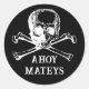Pegatina Redonda Jolly Rogers. Pirata de Halloween Negro. Ahoy mate