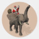 Pegatina Redonda Jolly Santa Claus Montando Sobre El Elefante