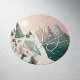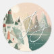 Pegatina Redonda Joy Winter Pueblo de Montaña | Fiesta de Navidad
