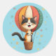 Pegatina Redonda Joyful Calico Cat Sky Adventure Ilustracion