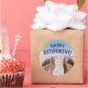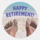Pegatina divertida de Feliz Jubilación con foto de pies arenosos en la playa es genial para una fiesta de jubilación o álbum de recuerdos.