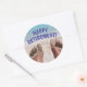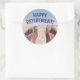 Pegatina Redonda Jubilación Feliz pies divertidos en la playa