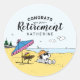 Pegatina Redonda Jubilación | Snoopy & Woodstock en la playa