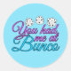 Me tenías en Bunco. Una frase divertida de la cultura pop para un juego divertido. Cuenta con una imagen de dados rodando sobre un fondo azul bonito.