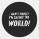 Pegatina Redonda Jugador, No Puedo Pausar, Estoy Salvando El Mundo.