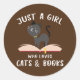 Pegatina Redonda Just A Girl Who Loves Cats And Books Funny