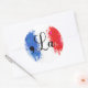 Este llamativo pegatina de la campaña presidencial de Kamala Harris destaca la audaz coma y la ley en el centro. El fondo está decorado en tonos rojos, blancos y azules que evocan la bandera estadounidense.