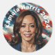 Pegatina Redonda Kamala Harris y la bandera estadounidense