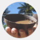 Ropa de kava sostenida bajo el hermoso fondo del cielo del Pacífico