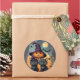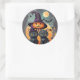 Pegatina Redonda Kawaii acuarela gatos negros Feliz Halloween