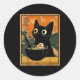 Pegatina Redonda Kawaii Cat Eating Ramen Noodles Funny Anime Gift G