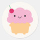 ¡Un lindo quequito feliz con helado rosa y cereza encima! Ideal para cumpleaños y celebraciones.
