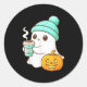 Pegatina Redonda Kawaii Ghost With Pumpkin Coffee Cozy Halloween Au