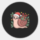 Pegatina Redonda Kawaii Santa Snail With Wrapped Box And Holly Star