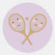 Pegatina Redonda Kawaii Tennis Rackers Happy Face Cute Lavender