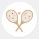 Pegatina Redonda Kawaii Tennis Racket Happy Face Cute Brown
